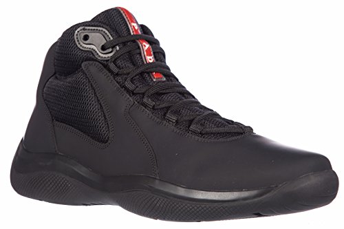 Product Description Prada men's shoes high top leather trainers sneakers calfskin rubber bike black men's shoes high top trainers sneakers in
